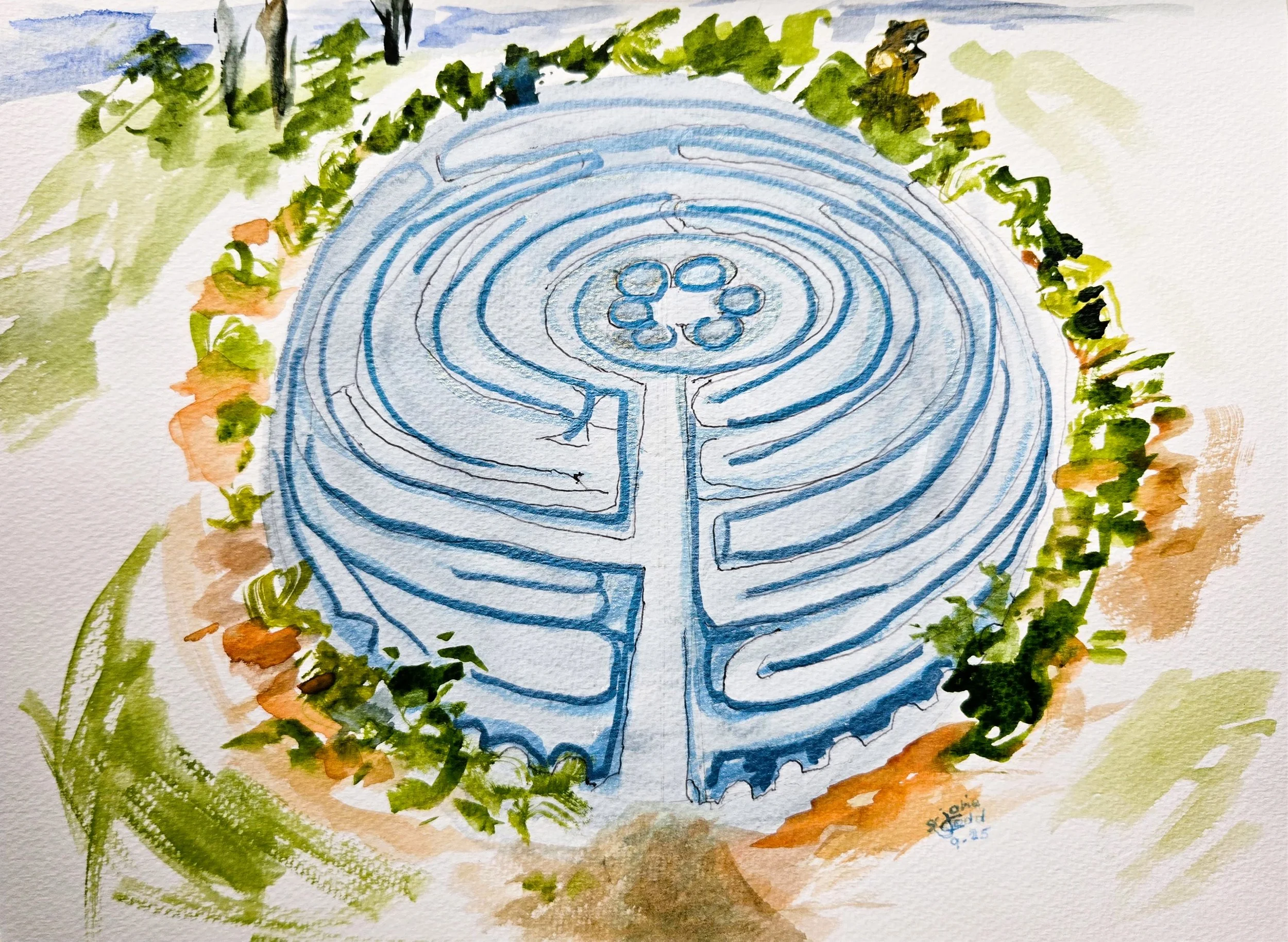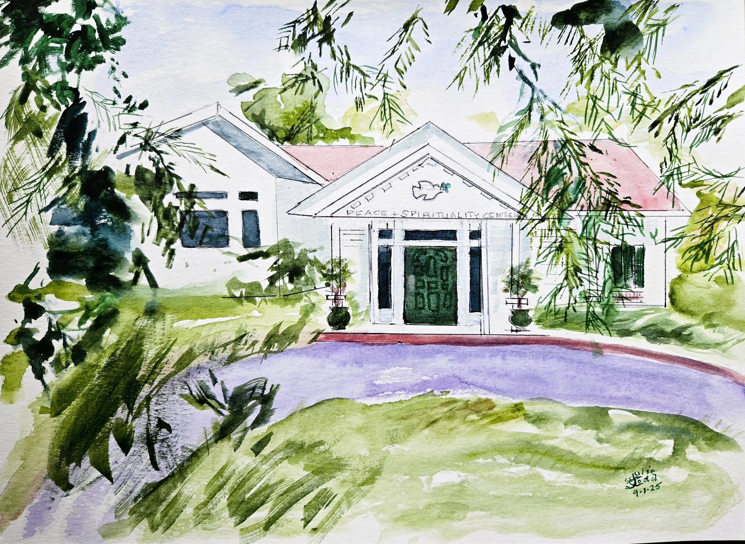 In this collection, Sr. Julie turns her eye—and brush—toward home. Each painting captures a beloved corner of St. Mary-on-the-Lake: the graceful lines of the old Bannan House (now the Peace & Spirituality Center), the quiet beauty of the residence, and the natural serenity of the grounds. These scenes are more than buildings and landscapes—they are sacred spaces woven with memory, ministry, and community. Sr. Julie’s work invites us to see this place not only as it is, but as it is cherished.