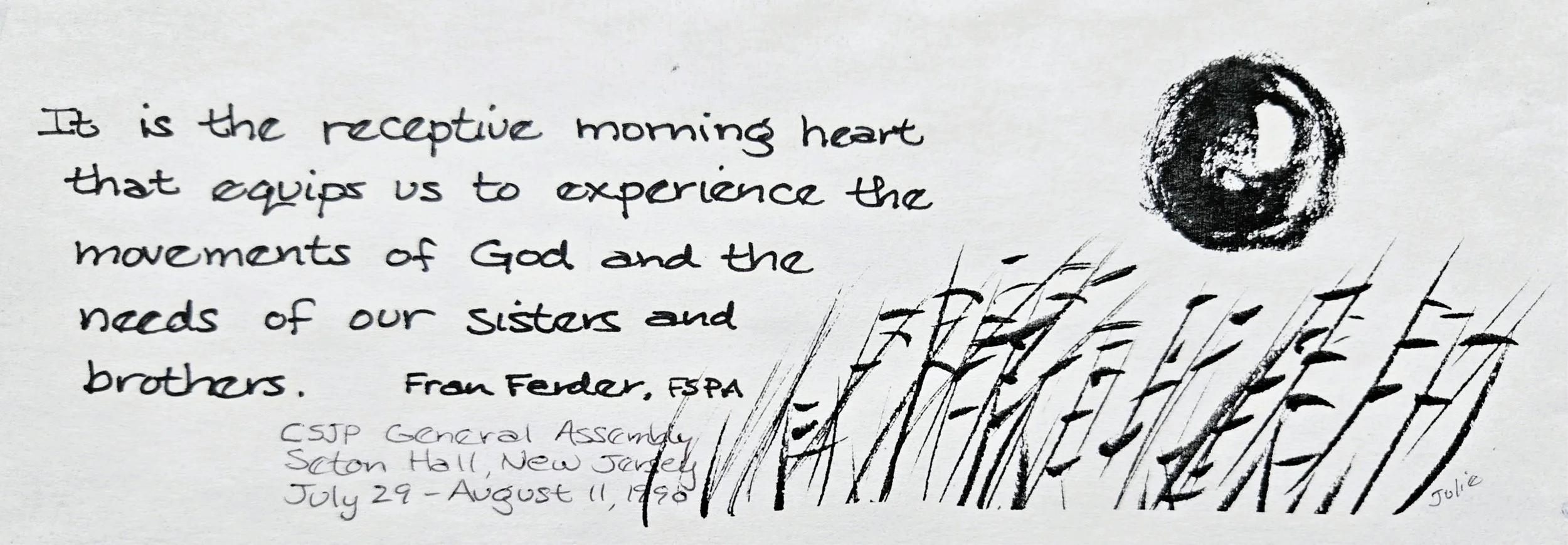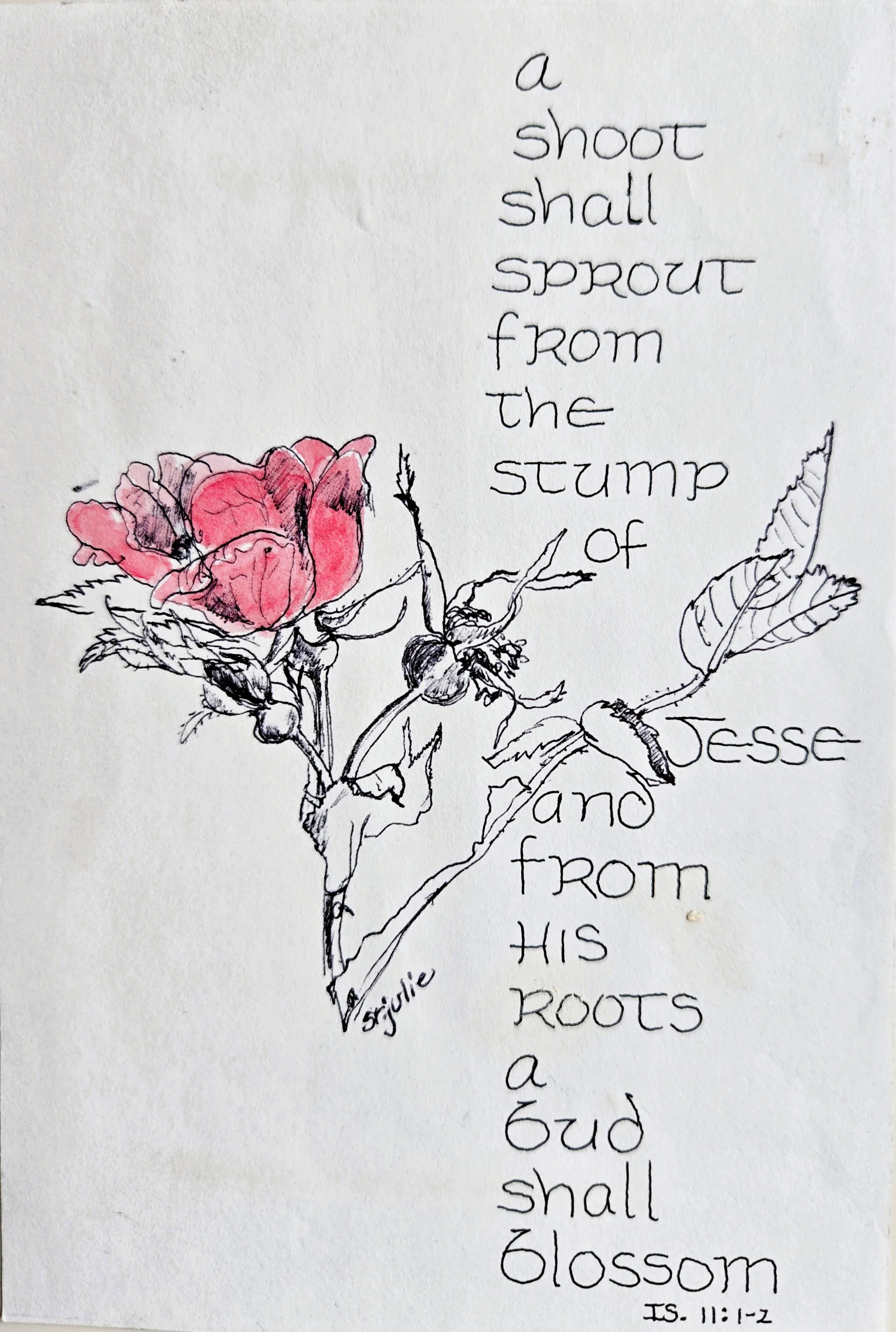 In this sumi-e inspired collection, Sr. Julie uses simple ink lines to capture the quiet beauty of the natural world. With minimal detail and careful attention to form, her work invites viewers to slow down and notice what is often overlooked. Each piece reflects a sense of calm, simplicity, and presence.