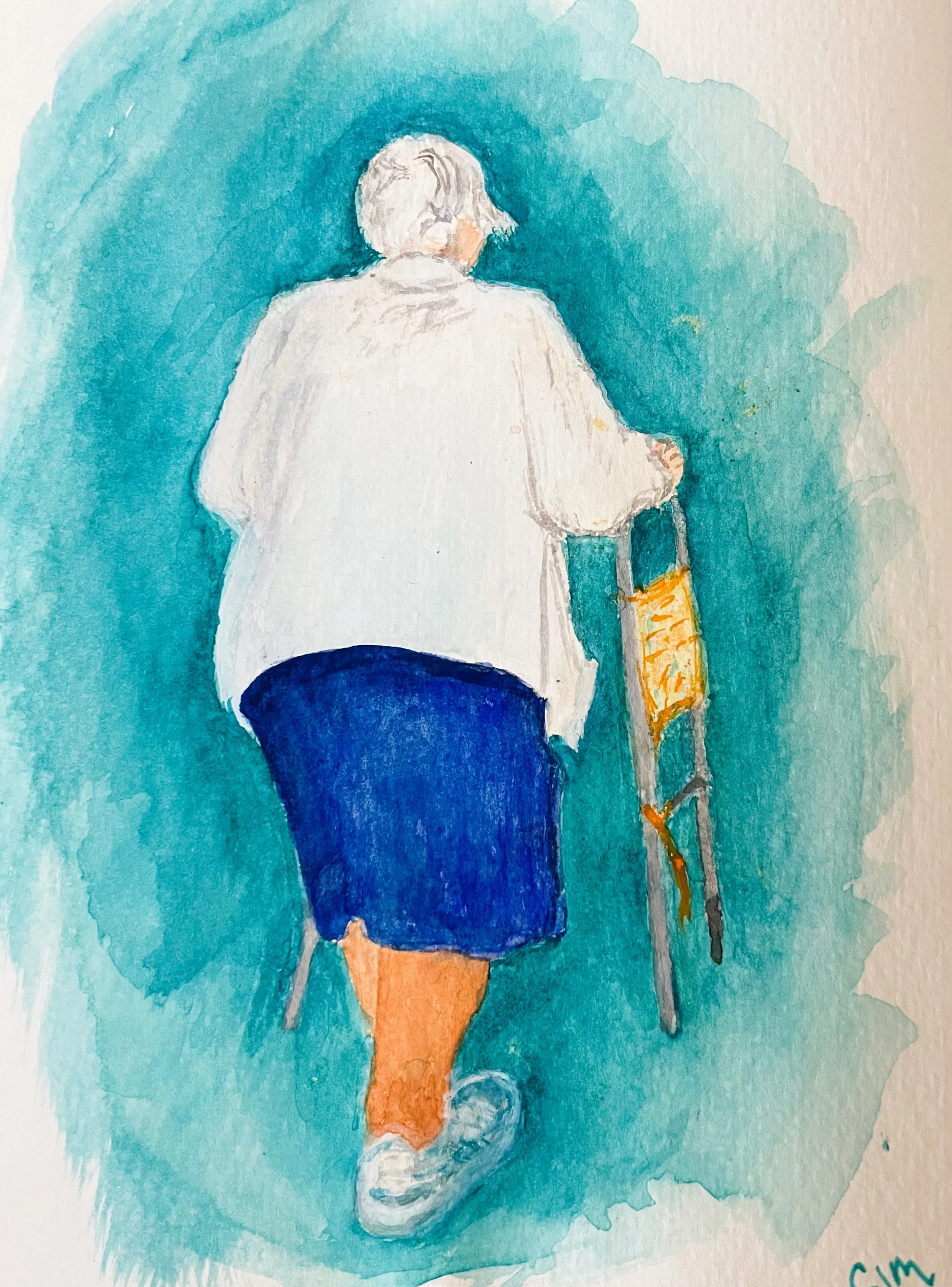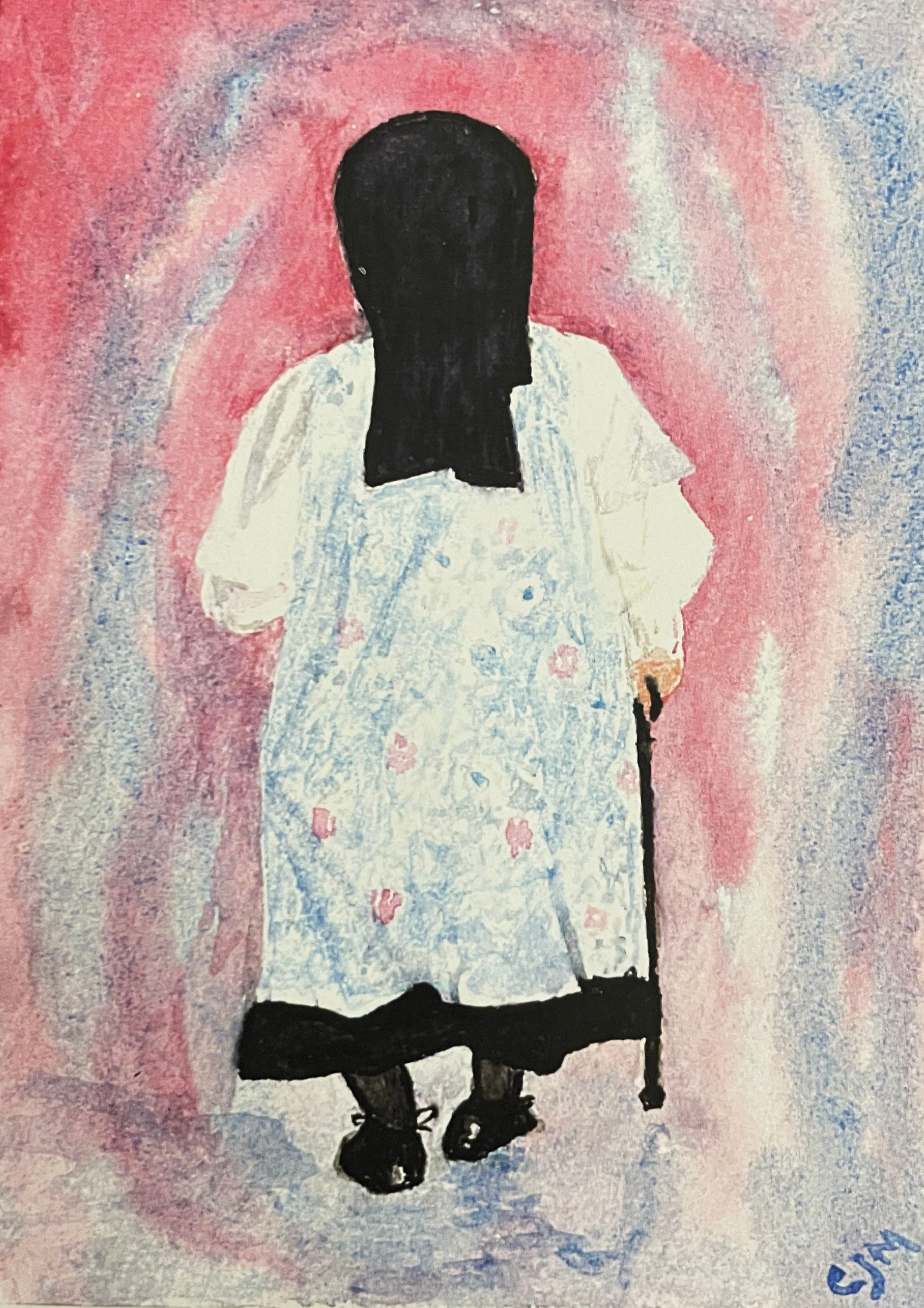 Though she doesn’t consider herself a professional artist, her work offers a quiet reflection on community, aging, memory, and the sacred lives of women who have shaped the congregation.